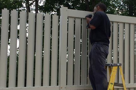 Step 11: Repeat this process until all pickets are in on one side of enclosure