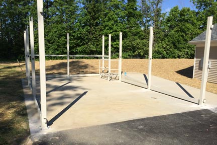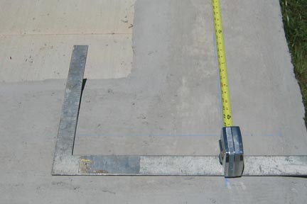 Step 1: On the 130” x 130” concrete pad snap string a square 116”x116” which is 7” from the side of the pad.