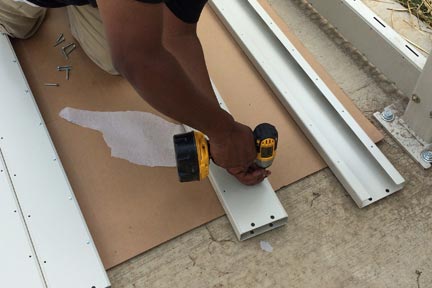 Step 10: Assembly of top rails, each rail has a cover that matches. Place cover on rail and put screws on the top screw area only