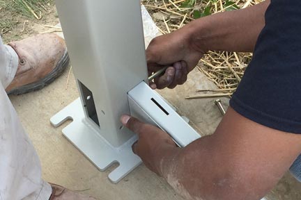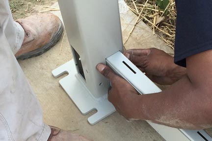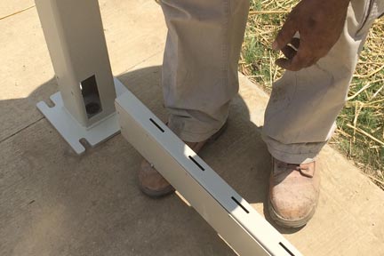 Step 6: As post are in proper position drill holes’ in center of the slotted area, this allows adjustment room.